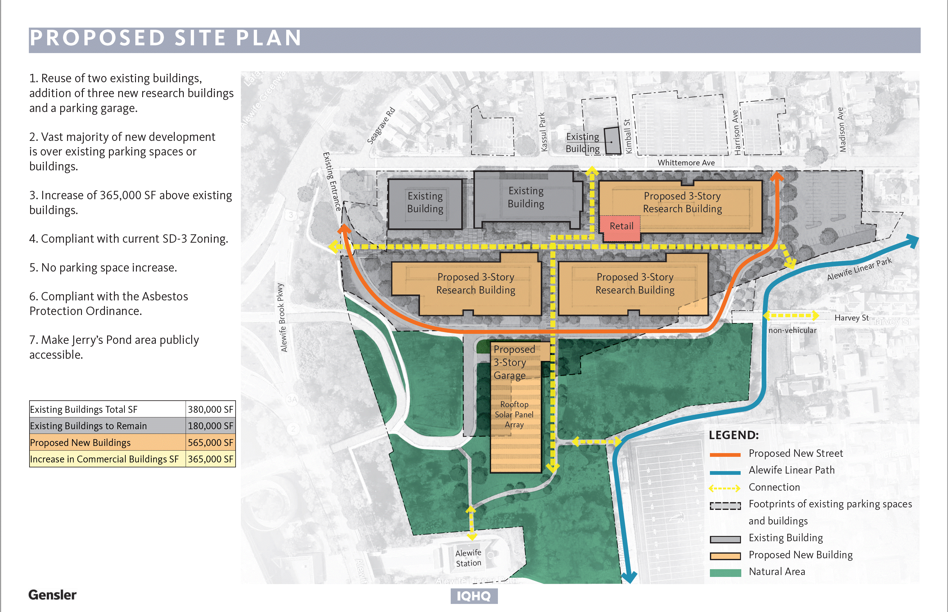 On January 11, 2021, IQHQ, the current owners of the former W.R. Grace site, have released their proposed plans for the site, which they are calling Alewife Park View the IQHQ Press Release and the Presentation Materials